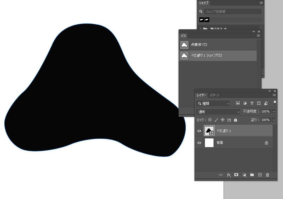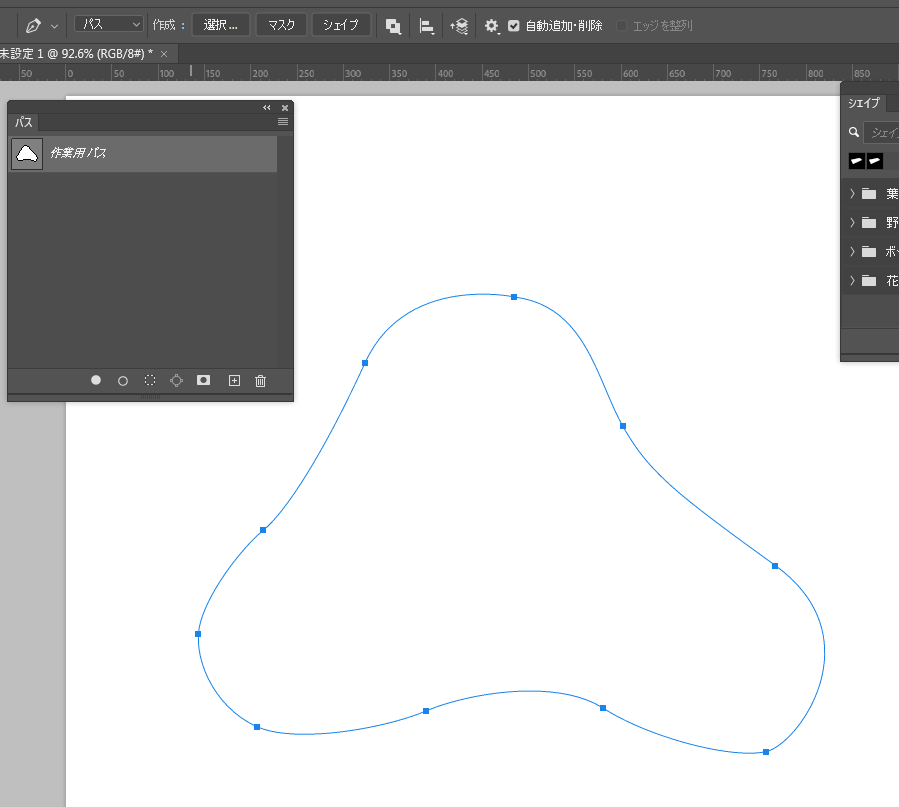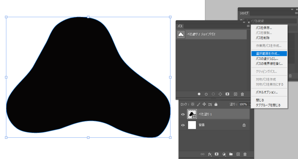 するとパスができるので、それを上記で伝えた方法を使えばシェイプができます。