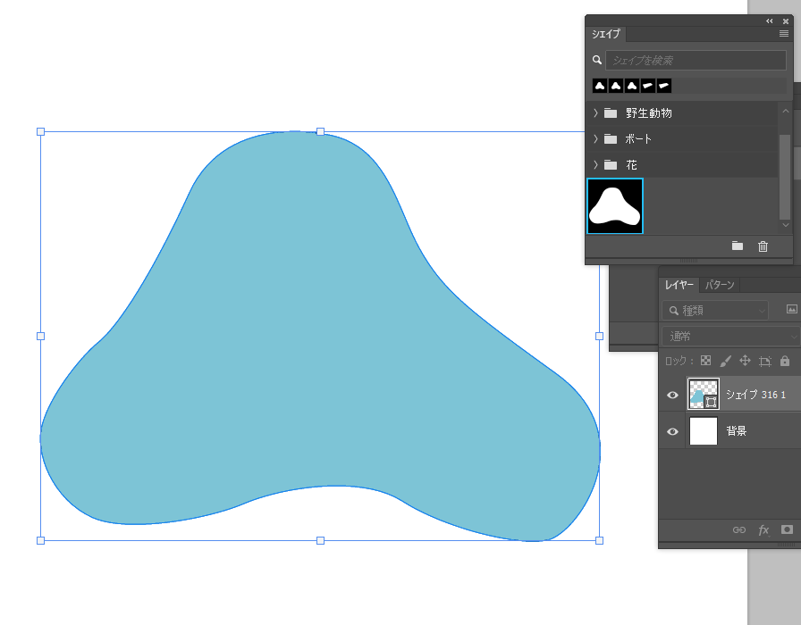 ちなみにパスではなく選択範囲からシェイプにするのも簡単。