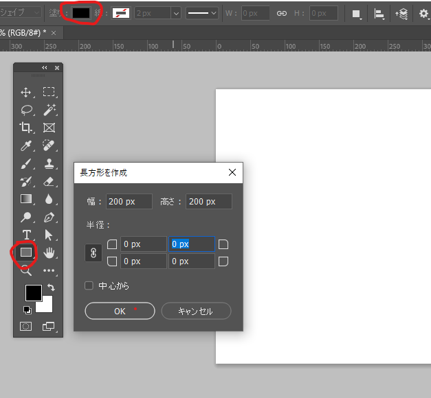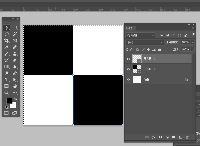 次に塗りを黒(#000000)にしてから長方形ツール(M)で四角を作ります。