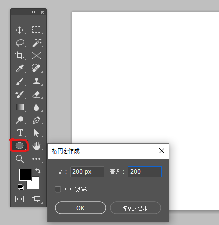 次に塗りを黒(#000000)にしてから楕円ツール(M)で四角を作ります。