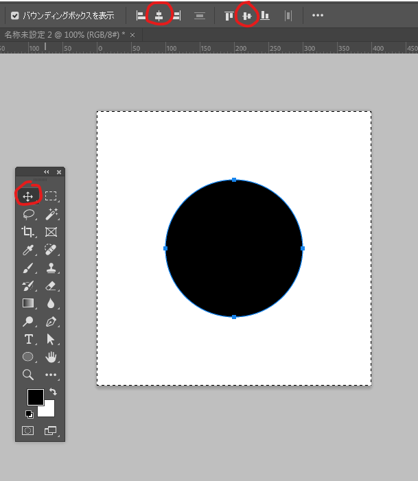次に丸をキャンバスの中央に配置。