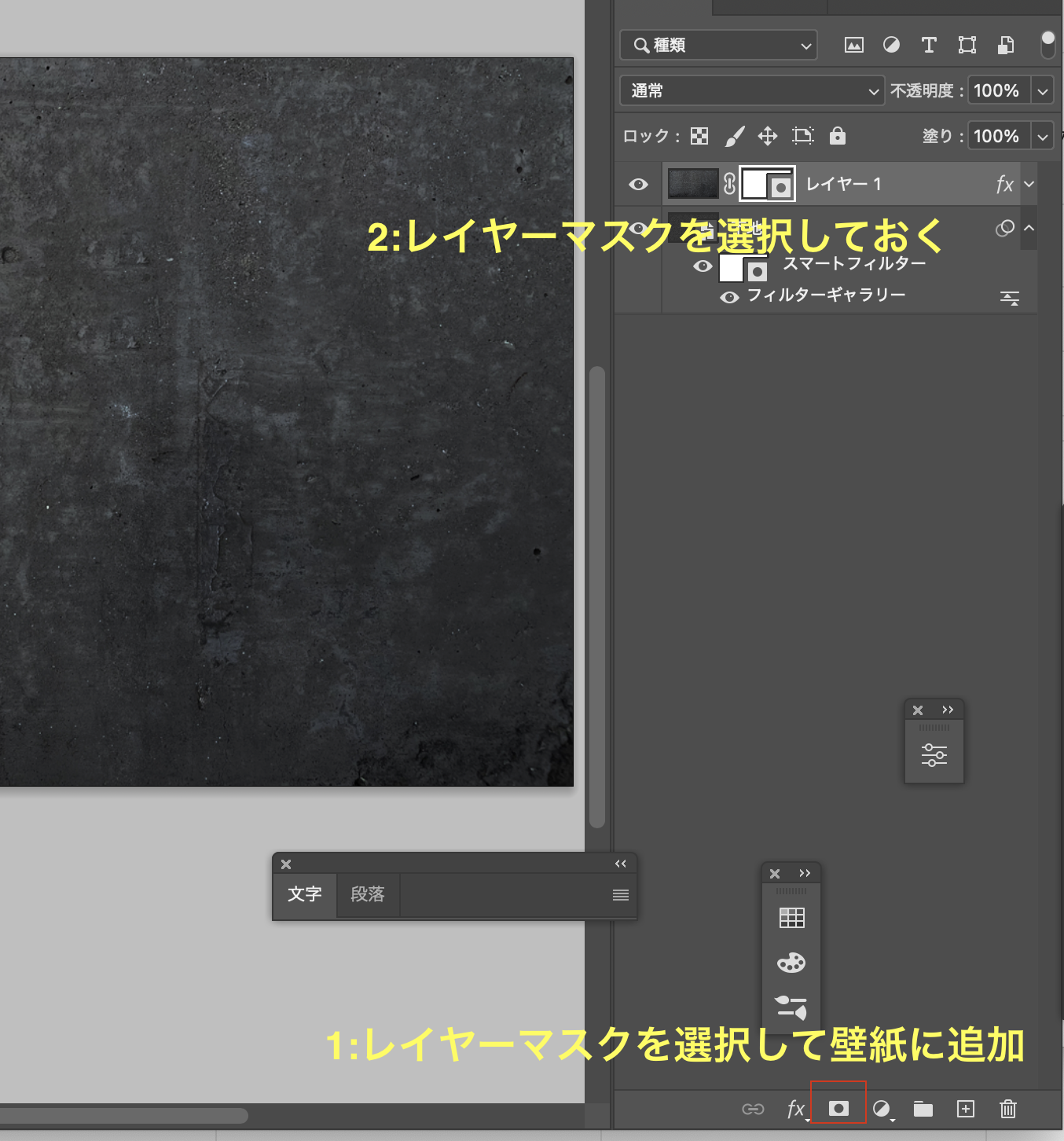 というわけで、まずは壁紙のレイヤーにレイヤーマスクを設定します。