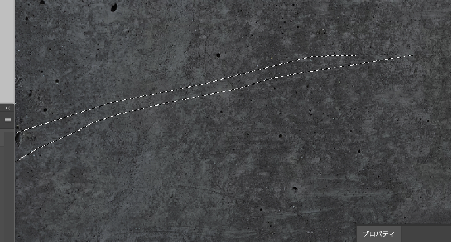 次に選択範囲の部分をレイヤーマスクで塗りつぶすとパスの形に画像が削れてひびっぽい形ができます。